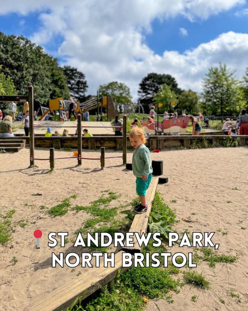 St Andrew Park has a fun play area with lots of equipment and sand play. What sets this park apart is the paddling pool which opens seasonally (usually by May Half Term – September) and its a popular spot on warm days! (Free to visit!) There is also a cafe kiosk with coffee, ice cream, snacks and light lunches. Toilets are available (although not sure these are the nicest!)
