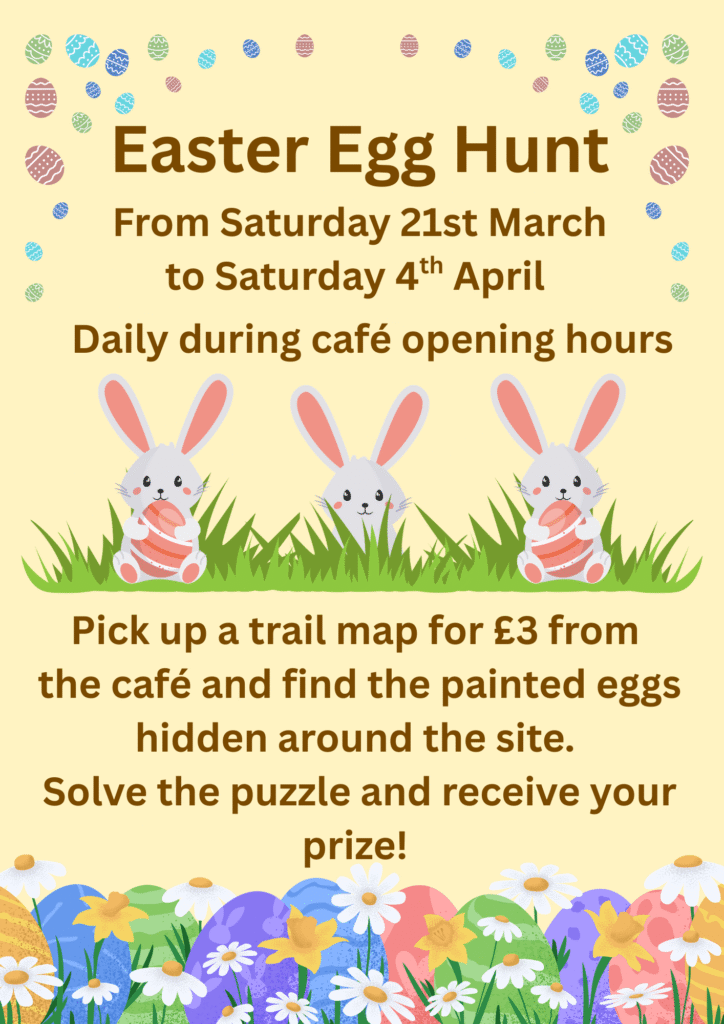 Sat 28 & Sun 29 March. Follow the clues left by the Easter Bunny across the 36 acre site. Other bookable activities including clip and climb, pedal go-karts and laser tag. Food available. Trail: £7 per child / £2.50 per adult Book tickets
