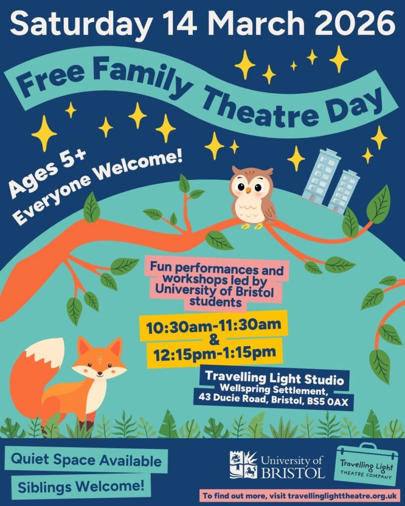Travelling Light Studio Free family theatre day – no pre-booking required. Saturday 14 March More details
